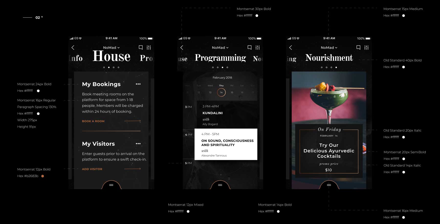 The Mobile App needed to be the foundation of the membership, communicating not only The Assemblage’s beliefs and values, but also enabling access to the key elements of the properties and the programming to The Assemblage members.